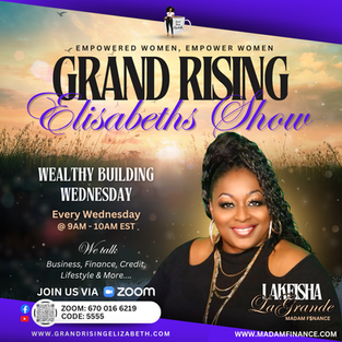 Welcome to the New Grand Rising Elizabeth: Wealthy Building Wednesday Show, hosted by the inspiring LaKeisha LaGrande, aka MADAM F$NANCE! Join us every Wednesday from 9 AM to 10 AM EST as we dive into the world of business, finance, credit, lifestyle, and more. 🌸💼💰